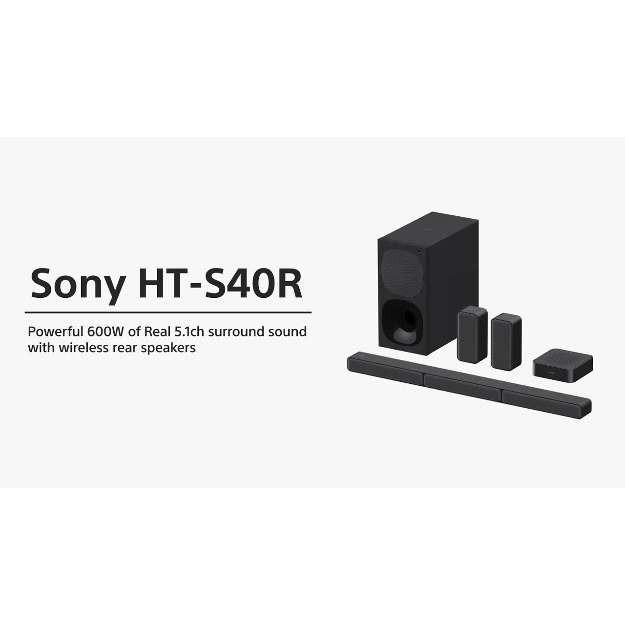 ساندبار سونی ht-s40r از ساب ووفر برخوردار است و از بلندگوهای پشتی بهره می برد. این ساندبار به شکلی طراحی شده که می تواند صدا را با کیفیت بالایی در فضای خانه پخش کند موضوع جالب در طراحی ساندبار سونی مدل ht-s40r این است که این محصول کاملا بی سیم است و بدونه اینکه خانه شما پر از سیم شود، می تواند صدای با کیفیتی را خلق کند. از دیگر ویژگی هایی که باعث شده ساندبار سونی ht-s40r مورد توجه قرار بگیرد توان خروجی آن است. توان خروجی این محصول به 600 وات می رسد که واقعا هیجان انگیز و جذاب است. این میزان حجم صدا برای مهمانی ها بسیار عالی است.ساندبار سونی S40R از قوی ترین و بهترین ساندبار های موجود در بازار می‌باشد که با ارائه و پخش صدای فوق العاده خود هر فرد را پس از شنیدن آن شگفت زده می‌کند. این سیستم صوتی دارای صدایی فراتر از انتظار هر کاربر است که توان خروجی آن 600 وات از 5.1 کانال می‌باشد. یکی از مهمترین ویژگی‌هایی که هر محصول باید داشته باشد طراحی زیبا و چشم گیر آن است که خوشبختانه ساندبار سونی دارای طراحی زیبا و هوشمندانه‌ای است که به ابهت و خاص بودن تلویزیون‌های شما می‌افزاید. با رنگ مشکی خود با محیط کاربر ست می‌شود و باعث بوجود آمدن نمایی فوق العاده می‌شود. این سیستم از چهار قسمت مجزا ساخته شده است که هر کدام از طراحی و وظیفه‌ی خاصی برخوردار می‌باشد، شامل یک ساندبار نواری شکل است که به سیستم خوابیده معروف است و زیر تلویزیون قرار می‌گیرد و بیشتر وظیفه‌ها را بر عهده دارد و از سه بلندگو تشکیل شده است.