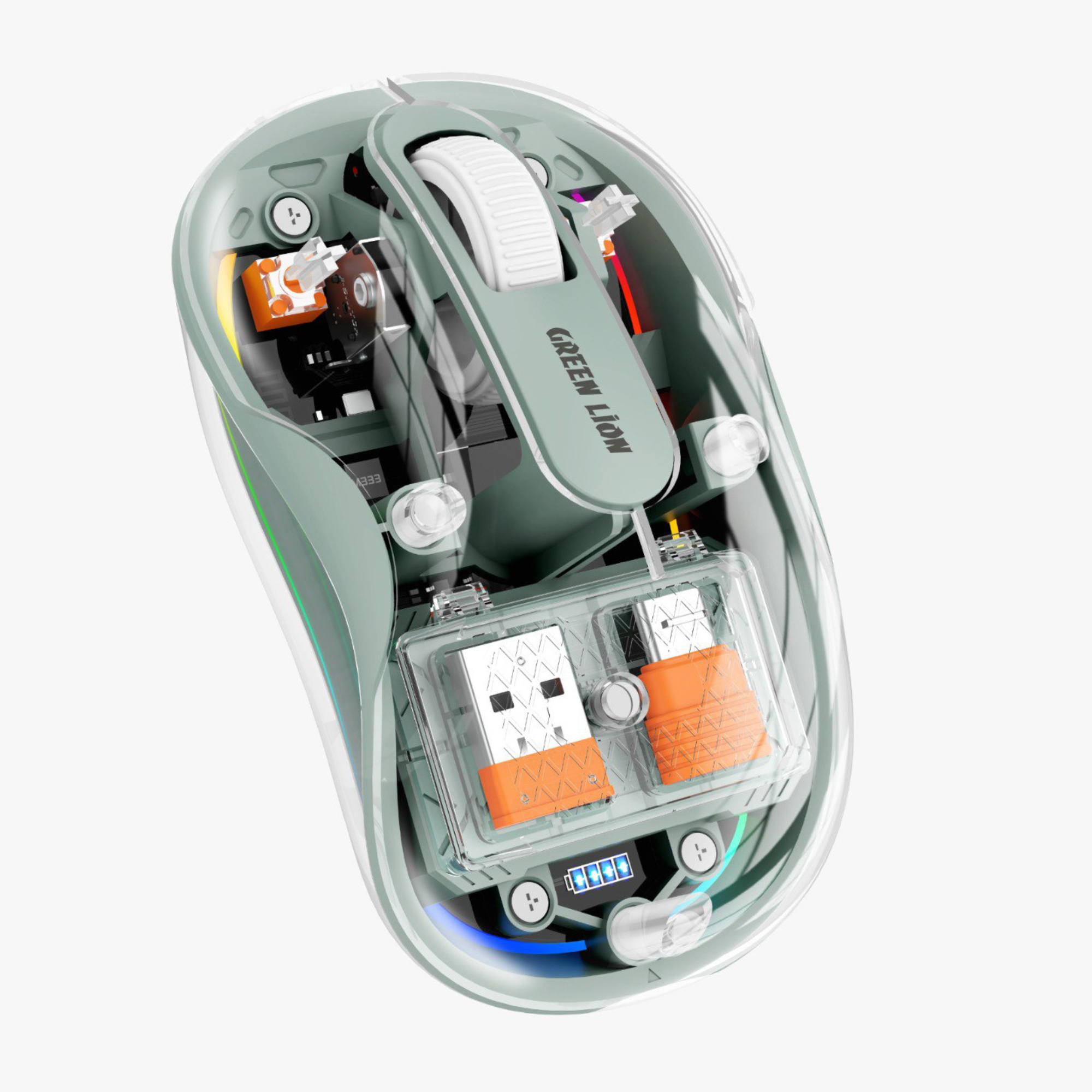 ماوس بیسیم گرینلاین مدل Turtle با طراحی شفاف و منحصربهفرد، یکی از جذابترین گزینههای موجود در بازار است. این ماوس با بهرهمندی از اتصال بیسیم 2.4 گیگاهرتز USB-A/Type-C، امکان اتصال همزمان به سه دستگاه مختلف را برای شما فراهم میکند. همچنین، برد اتصال این ماوس تا 10 متر بوده و پایداری بالایی را ارائه میدهد.
